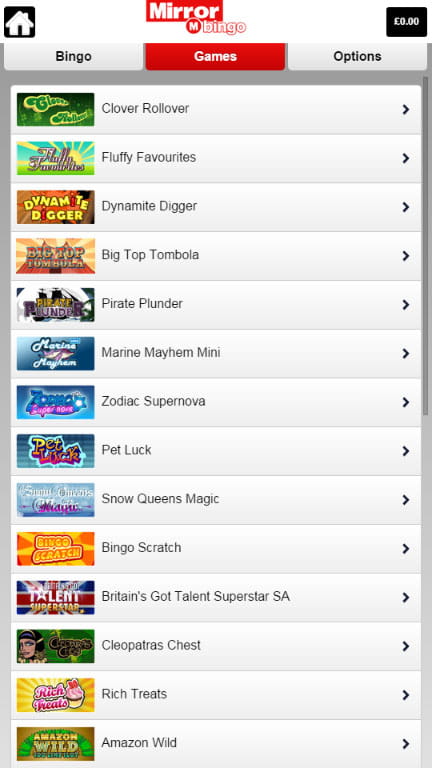 Being a Virtue Fusion powered bingo site, Mirror has a few very rare games in their collection apart from the traditional 75- and 90-ball rooms. Take for instance WWTBAM, DOND and Lucky Numbers. There are also the linked games Bingo Linx and the exclusive room Pennies from Heaven. The slot tab includes the all-time-favourites Clover Rollover, Fluffy Favourites and many more.